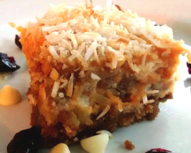The bars are somewhat softer than traditional magic bars, but they hold together well when cooled. Spreading the toppings over the base before adding the condensed milk keeps them in place.