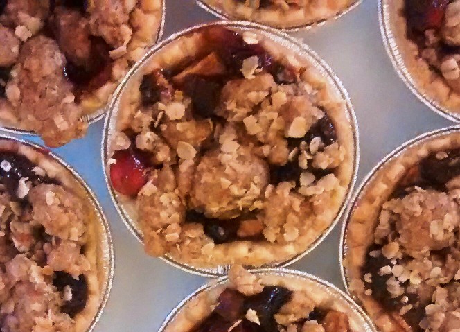 If you use pre-made tart shells, you can have these in the oven in the time it takes to peel and chop a few apples and stir together some crumble.