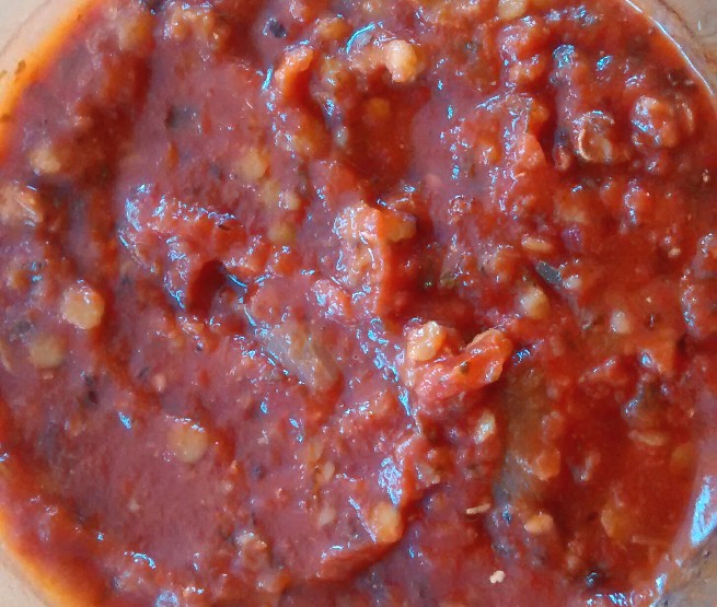 I think the key to the success of this sauce (apart from its great taste) lies in the texture. Red lentils and bulgur give this sauce body and make it feel substantial.